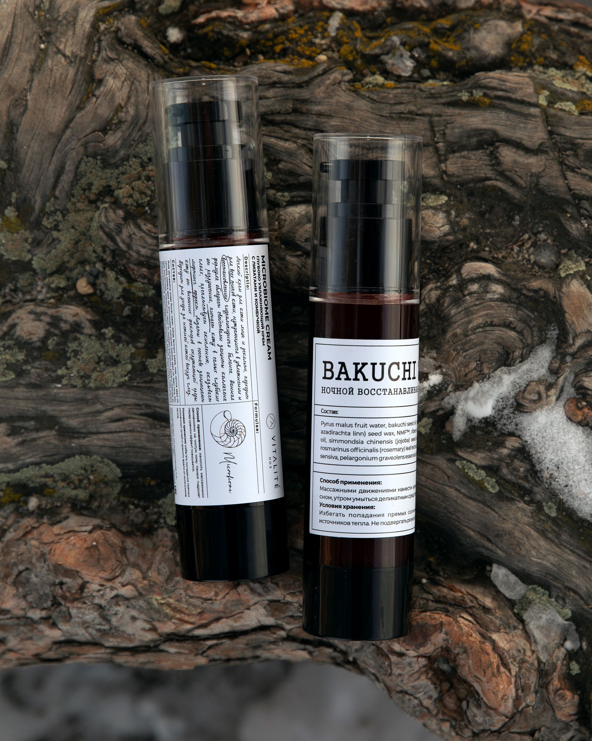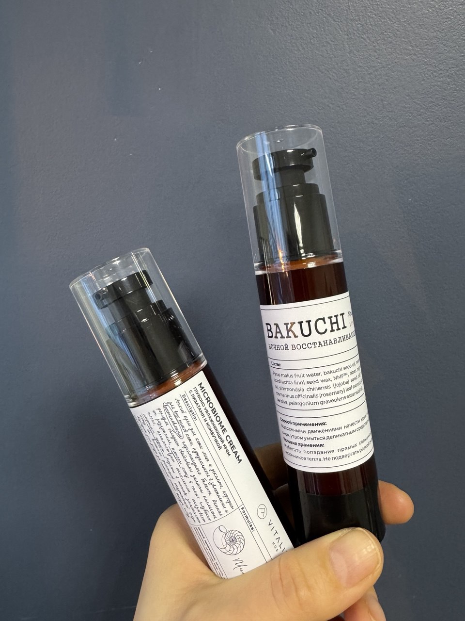 В состав набора входят Глубоко увлажняющий крем для лица с лизатами и комбучкой (f) MICROBIOME и Ночной восстанавливающий крем для лица (f) BAKUCHI прочитать о которых подробнее можно по гиперссылкам (нажмите на название крема)